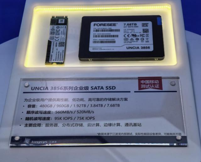 據(jù)現(xiàn)場工作人員介紹,此前江波龍企業(yè)級DDR4、UNCIA 3836 SATA SSD已完成測試認證。其UNCIA 3856系列SATA SSD采用最新NAND Flash,容量從480GB到最高7.68TB,性能和可靠性良好,將接力上一代SATA SSD UNCIA 3836進入中國移動產(chǎn)業(yè)鏈。