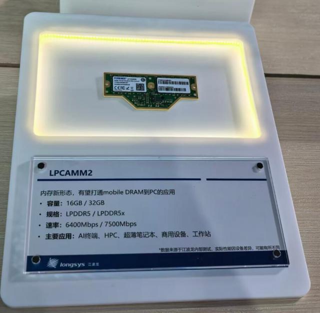 此外,江波龍還帶來9月剛發(fā)布的新品SOCAMM2,這是基于LPDDR5/5x的創(chuàng)新企業(yè)級內存產(chǎn)品。它用于應對不同規(guī)模AI工作負載挑戰(zhàn),江波龍是國產(chǎn)模組廠商中第一家推出該產(chǎn)品的企業(yè)。SOCAMM2基于LPDDR5/5x顆粒和CAMM模塊化設計,采用4 - N - 4 HDI超高密度互連疊層結構,提升了設計復雜度和孔密度,為高性能計算奠定基礎,與HBM一起為AI服務器提供高性能存儲。