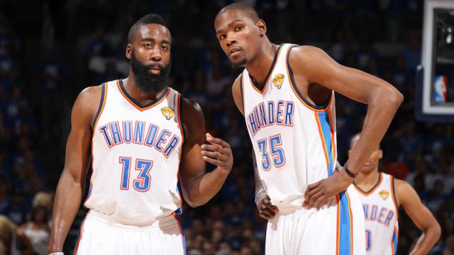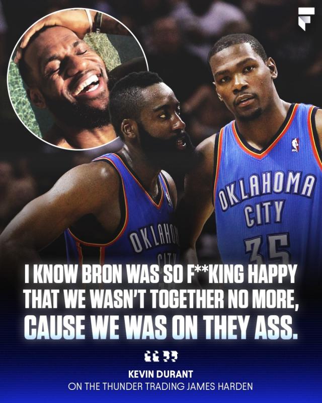 杜蘭特哈登憶雷霆三少散伙:哈登氣壞,杜蘭特稱詹姆斯最開心