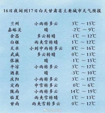 近期冷空氣活動(dòng)頻繁,16日至17日,我省自西向東將經(jīng)歷一次降水降溫、大風(fēng)沙塵天氣過程,夜間部分高海拔地區(qū)氣溫會(huì)驟降至零下。