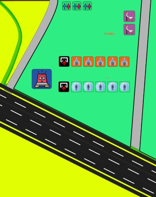 衛(wèi)生間位于休閑區(qū)東側(cè)(休閑區(qū)出入口左右草坪區(qū)域)