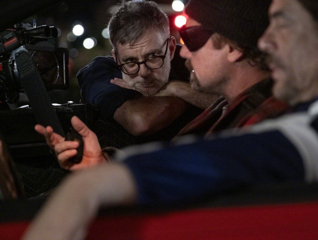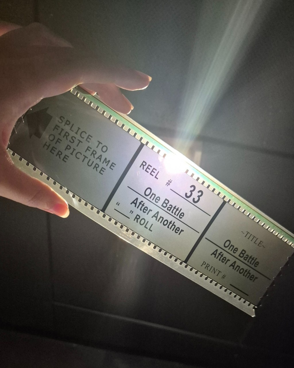 值得一提的是,《一戰(zhàn)再戰(zhàn)》是PTA第一部出現(xiàn)智能手機(jī)的電影,他常復(fù)現(xiàn)遠(yuǎn)去的世代。這部背景設(shè)定在當(dāng)下的作品用已過時(shí)的35毫米膠片拍攝,還是VistaVision寬銀幕格式,斯皮爾伯格對此好奇。PTA在對談中解釋,2011年拍《大師》時(shí)測試畫面格式,遇到老式VistaVision攝影機(jī)但太舊無法拍完整電影,后來一直惦記。2019年和Thom Yorke合作拍MV時(shí)翻新了攝影機(jī),畫面很棒,就想用來拍電影。后來遇到吉奧瓦尼·瑞比西,他把攝像機(jī)翻新得很完美,這才讓用它拍電影可行。