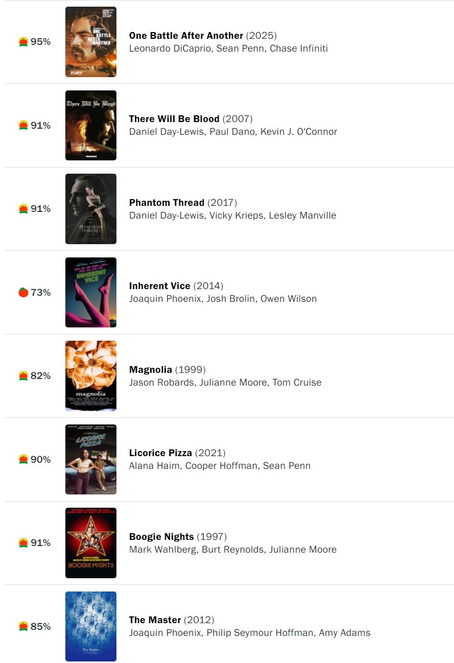 自9月26日在北美等地公映以來,《一戰(zhàn)再戰(zhàn)》的全球票房目前累計(jì)已超1.4億美元,他過去票房最高的作品是拿下7610萬美元的《血色將至》。在影評網(wǎng)站“爛番茄”上,《一戰(zhàn)再戰(zhàn)》憑借95%的新鮮度超越《血色將至》(91%),成為他評分最高的作品。