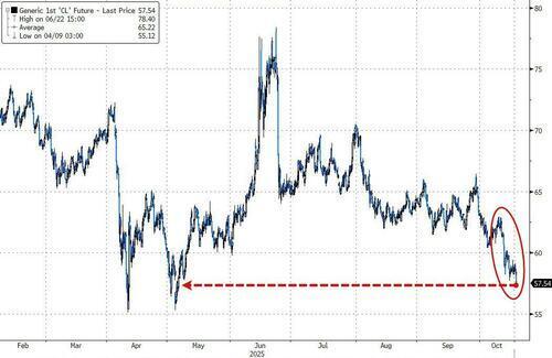 周四,美國(guó)WTI原油期貨收于每桶56.99美元,跌幅2.3%,創(chuàng)下2021年2月以來最低價(jià)格,過去一年已下跌19%。本周跌幅超過了今年春季特朗普宣布一系列關(guān)稅政策引發(fā)經(jīng)濟(jì)動(dòng)蕩擔(dān)憂時(shí)的低點(diǎn)。