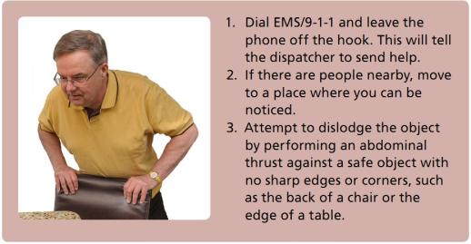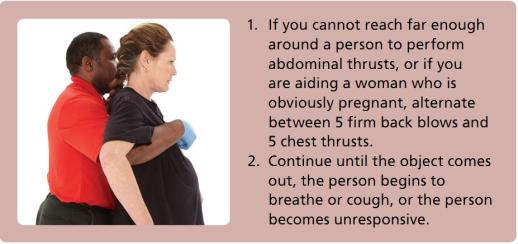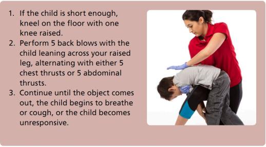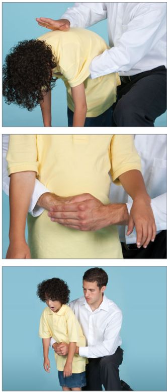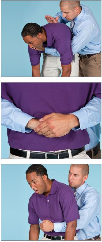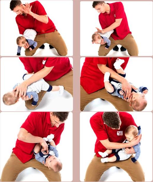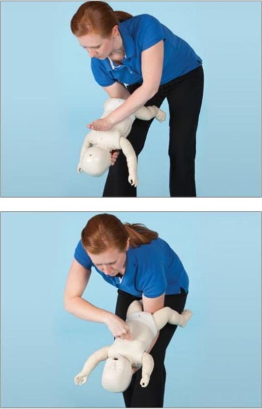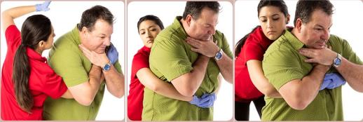 先進行 5 次拍背,然后進行 5 次胸部沖擊或 5 次腹部沖擊,如此重復。