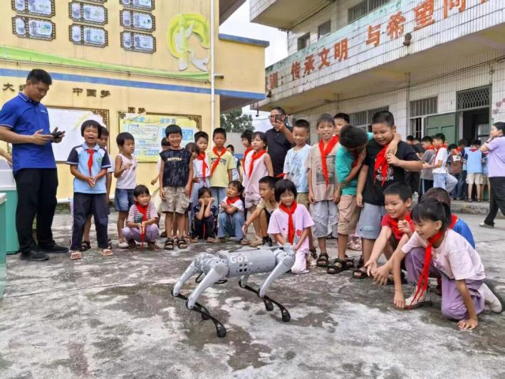 師生們?cè)谟^看體驗(yàn)機(jī)器狗表演