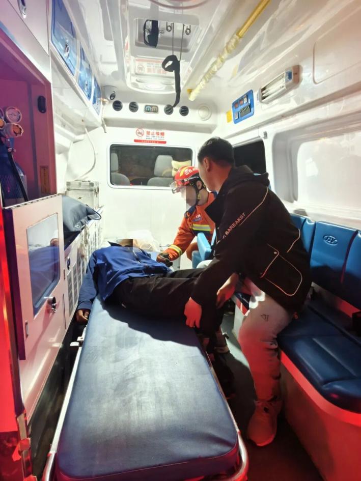 經(jīng)過1個多小時的救援,消防員最終將被困村民轉(zhuǎn)移至安全區(qū)域,并交由120急救人員救治。