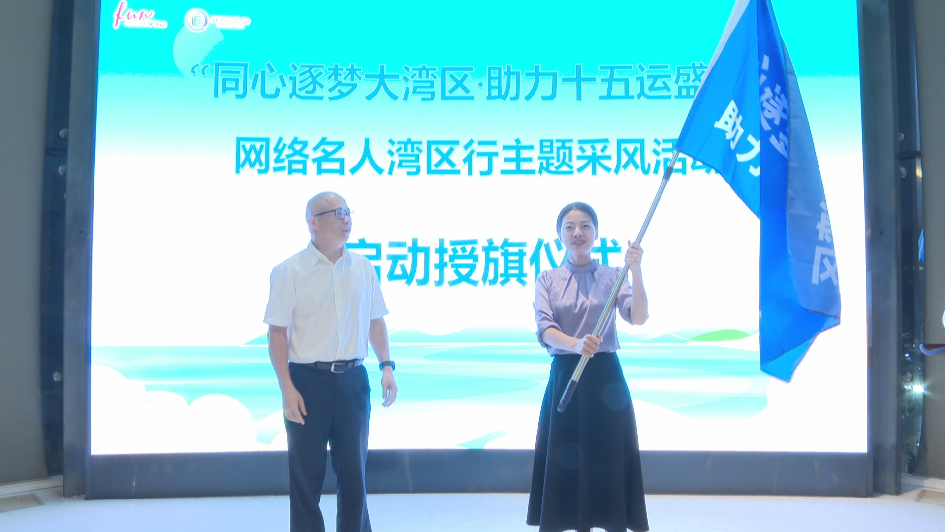 佛山市委宣傳部副部長(zhǎng)、網(wǎng)信辦主任梁恩球?yàn)椴娠L(fēng)團(tuán)授旗,廣東省互聯(lián)網(wǎng)業(yè)聯(lián)合會(huì)秘書(shū)長(zhǎng)曾玲珊代表采風(fēng)團(tuán)接過(guò)旗幟。