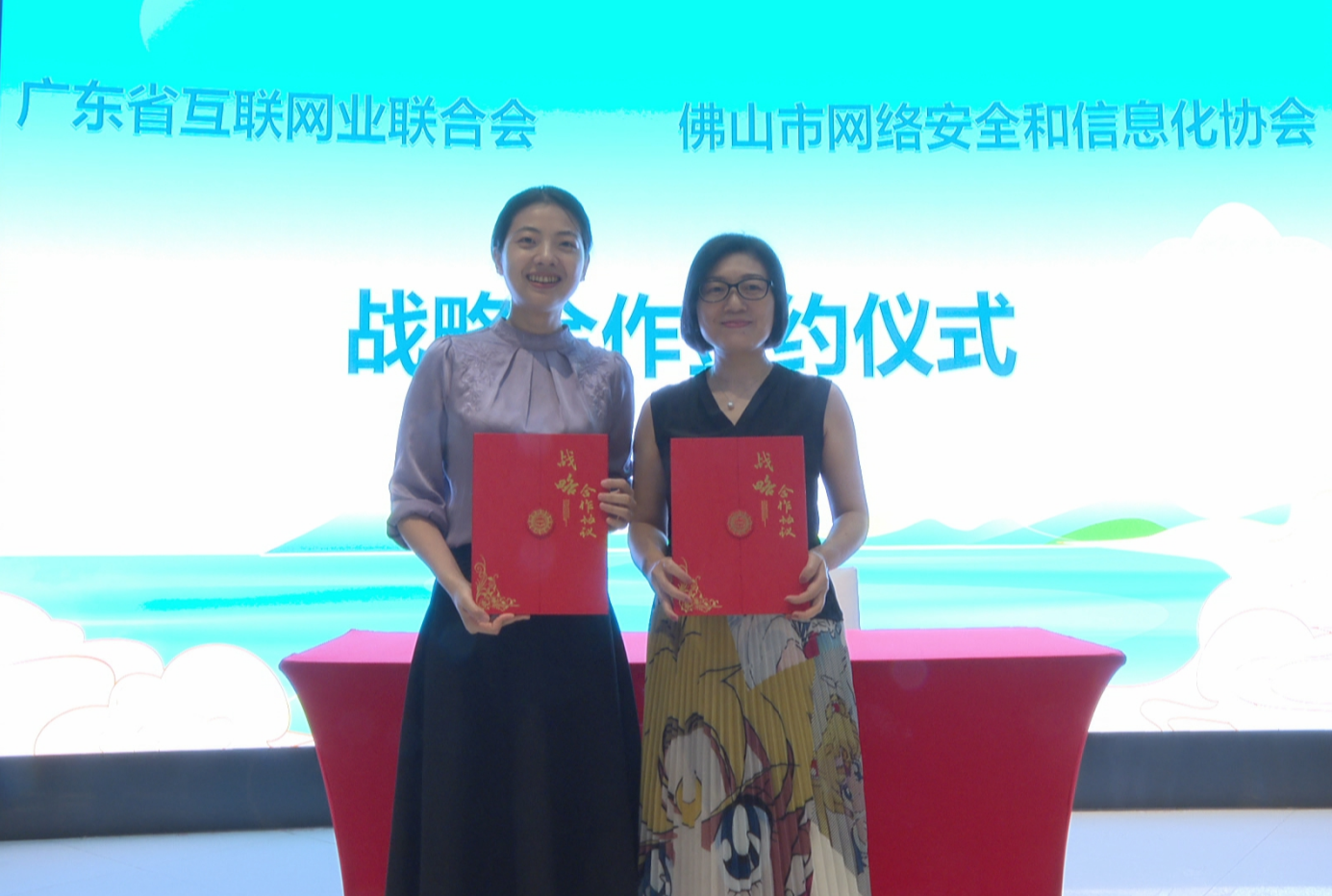 廣東省互聯(lián)網(wǎng)業(yè)聯(lián)合會(huì)秘書(shū)長(zhǎng)曾玲珊與佛山市網(wǎng)信協(xié)會(huì)秘書(shū)長(zhǎng)唐物華作為代表上臺(tái)簽約。