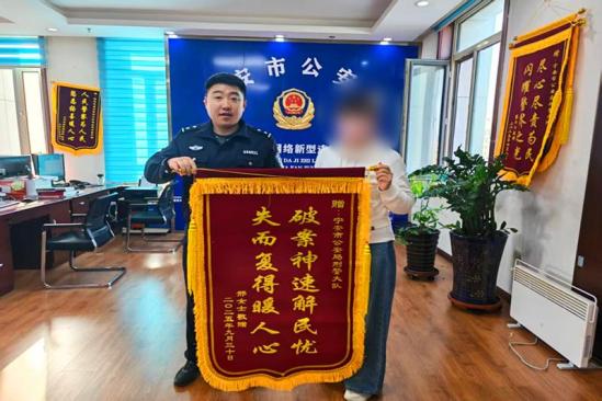 日前,寧安市公安局刑偵大隊(duì)在辦理一起電信網(wǎng)絡(luò)詐騙案時(shí),深入挖掘線索、追蹤資金流向,成功為受害人邢女士追回 6 萬(wàn)元經(jīng)濟(jì)損失。近日,邢女士送來(lái)了一面印有‘破案神速解民憂、失而復(fù)得暖人心’的錦旗,向認(rèn)真履職的民警表達(dá)誠(chéng)摯感謝。