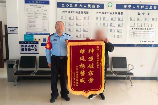 近日,沙蘭鎮(zhèn)長(zhǎng)安村村民孟先生報(bào)警稱摩托車丟失。派出所民警接警后迅速開展工作,經(jīng)調(diào)取公共視頻、走訪調(diào)查,發(fā)現(xiàn)是孟先生下車忘拔鑰匙,被他人騎走。最終,民警找回了摩托車。孟先生送來(lái)了一面印有‘神速破竊案、雄風(fēng)揚(yáng)警威’的錦旗,向民警表示感謝。