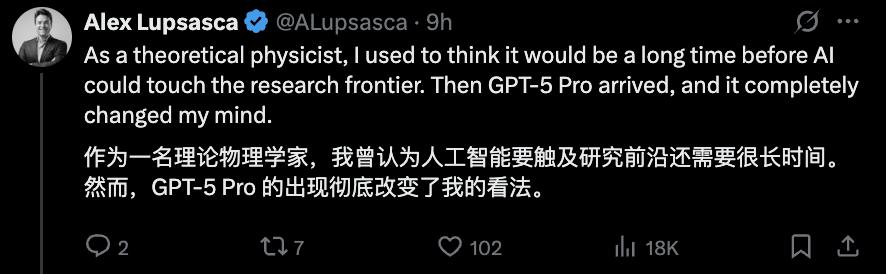 黑洞物理學(xué)家、物理學(xué)新視野獎(jiǎng)獲得者Alex Lupsasca(以下簡(jiǎn)稱老盧)宣布加入OpenAI。他表示:“作為理論物理學(xué)家,我曾認(rèn)為人工智能要觸及研究前沿,還需要很長(zhǎng)時(shí)間。然而,GPT - 5 Pro的出現(xiàn)徹底改變了我的看法。”