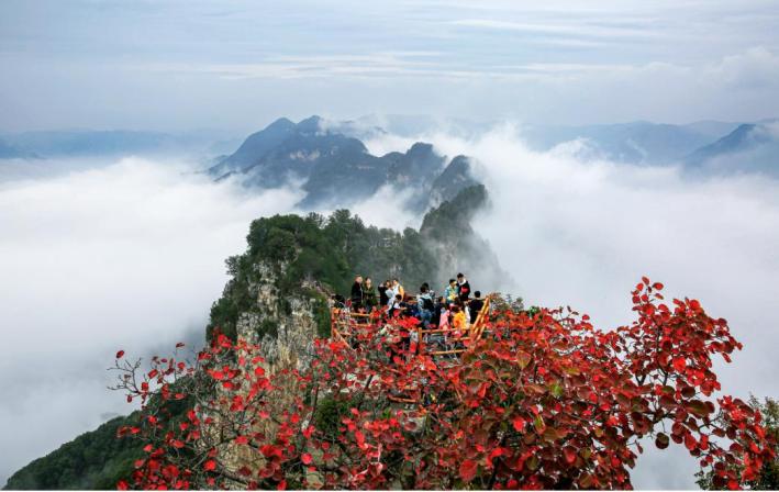 雨打青松,霜染楓葉,神農(nóng)山上的紅葉像一團(tuán)團(tuán)燃燒的火焰,熱烈而奔放。遠(yuǎn)遠(yuǎn)望去,山巒好像披上了一層五彩的錦緞。最美的是雨后云海翻騰的時(shí)候,當(dāng)熱烈的紅葉遇上飄逸的云海,視覺(jué)效果簡(jiǎn)直太棒了。快約上幾個(gè)好友,一起來(lái)欣賞這場(chǎng)自然奇觀(guān)吧。