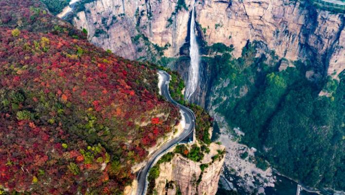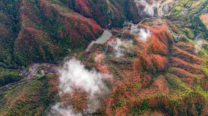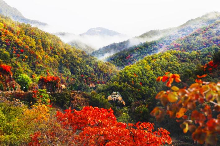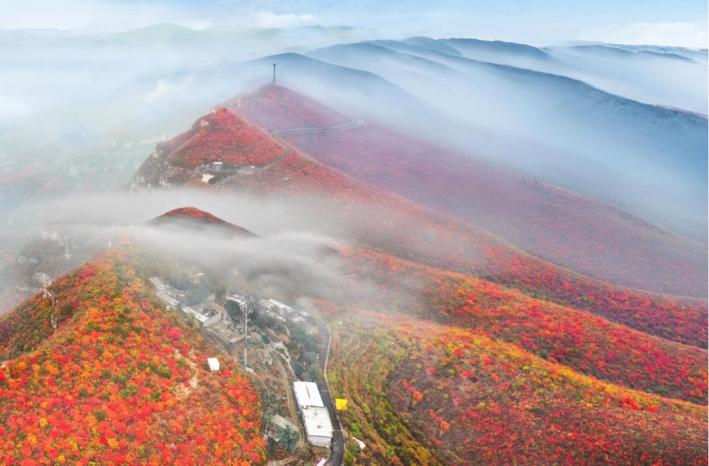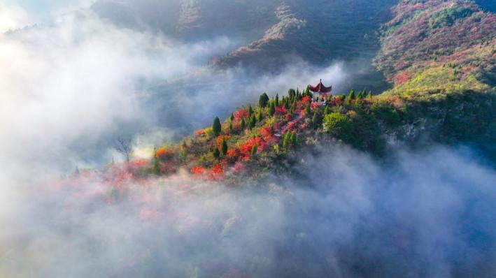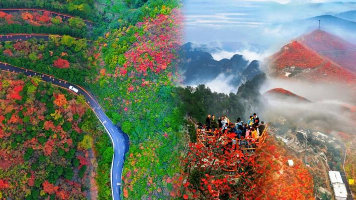 王維詩(shī)中的云臺(tái)山,如今褪去了綠色,換上了紅色的衣裳。登上茱萸峰,連綿的群山在云霧中若隱若現(xiàn);漫步紅石峽,丹霞地貌與碧水清潭在紅葉的點(diǎn)綴下,相得益彰。從十月的五彩斑斕到十一月的紅似火焰,這里的秋色一直在線(xiàn),等你來(lái)打卡。