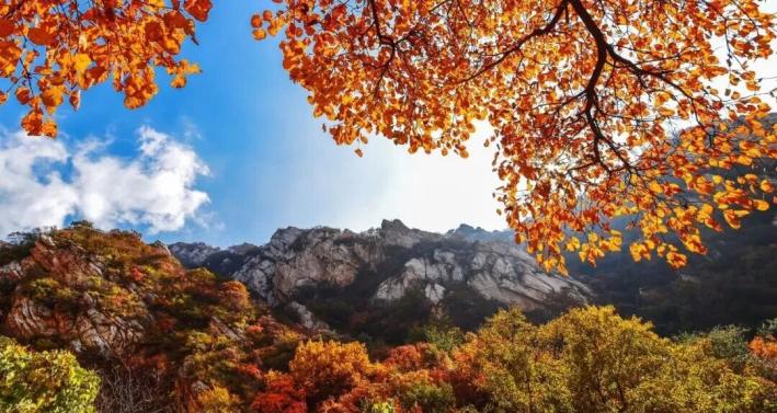 “看萬(wàn)山紅遍,層林盡染”,每年寒露過(guò)后,以黃櫨為主的大片紅葉林帶開(kāi)始展現(xiàn)出獨(dú)特的魅力。漫步山間,火紅的樹(shù)葉與古老的巖石相互映襯,帶來(lái)別具一格的賞秋體驗(yàn)。