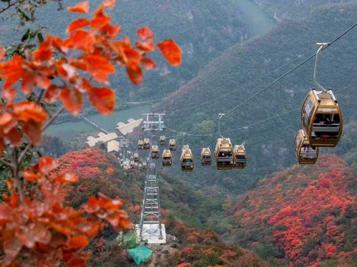 寶泉的秋色,要坐索道才能“刷”出來(lái)。從丹崖天路到天鏡,一路都是絕佳的觀(guān)景點(diǎn),峽谷就像被潑了紅墨,濃烈而醉人。這里的秋天是黃、綠、紅相互交錯(cuò)的多彩畫(huà)卷,詩(shī)意與畫(huà)意完美融合。找個(gè)周末,說(shuō)走就走,輕松就能收獲一組秋日美照。