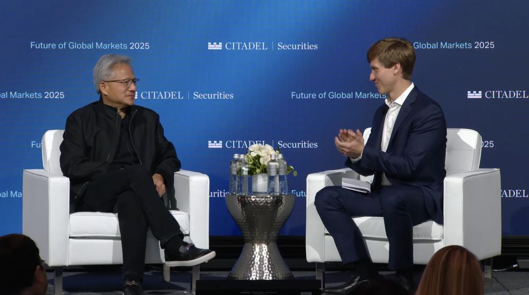 城堡證券10月16日發(fā)布了當(dāng)時黃仁勛與紅杉資本合伙人康斯坦丁·布勒(Konstantine Buhler)的對談視頻,主題為“Citadel Securities 2025 年全球市場未來展望:人工智能與下一個增長前沿”。