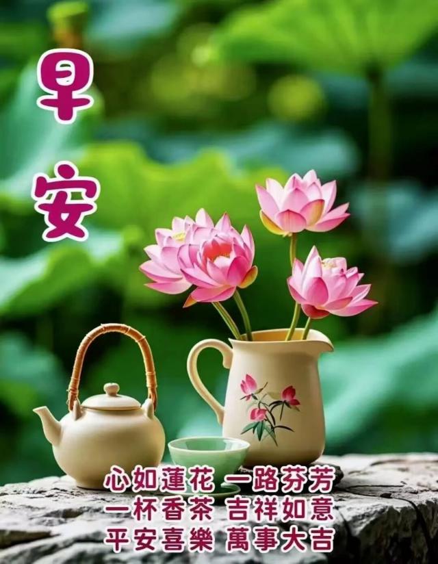 清晨的鮮花,永遠(yuǎn)散發(fā)著芬芳;結(jié)下的緣分,永遠(yuǎn)不會(huì)被遺忘。滿滿的祝福,在這清晨為你送上。擁有健康的心態(tài),就會(huì)永遠(yuǎn)充滿陽(yáng)光。人生在世所求為何?知足常樂(lè)便沒(méi)有憂愁。只要健康常在,就能笑對(duì)冬夏與春秋。早上好!