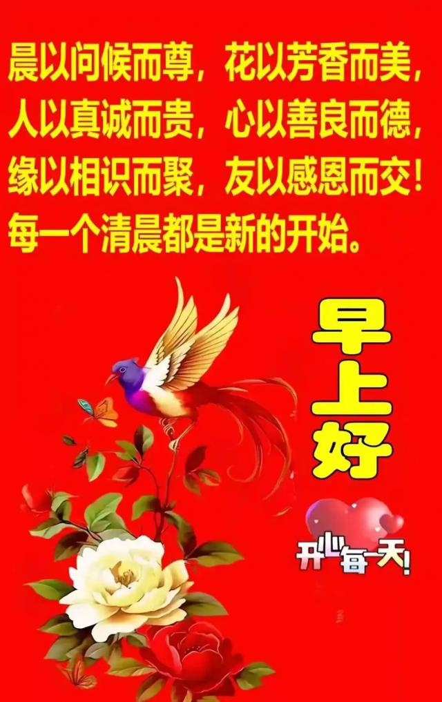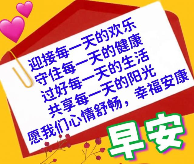人生,快樂(lè)就好;親情,記掛就好;朋友,不忘就好。大家一起健康才是最好。一聲早安,勝過(guò)一切!送上我最誠(chéng)摯的祝福,愿你一生幸福美滿,事事順心如意,笑口常開(kāi),步步高升!早安!
