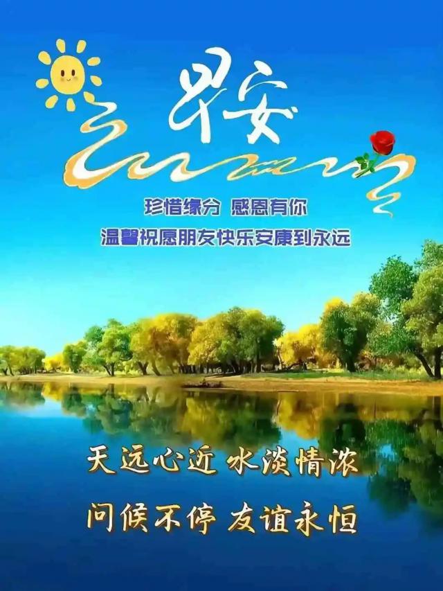 祝福無聲,問候永恒。默默地想起你,靜靜地牽掛你。難忘的朋友,不變的友誼。珍惜美麗的相遇,無論天涯海角,我都深深祝福你幸福一生。愿好友健康幸??鞓访恳惶?!親們,早上好!