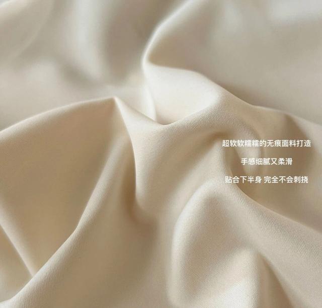 它有著奶皮絲滑的觸感,貼膚無感,讓人有種沒穿內(nèi)褲的錯覺。面料彈力十足,能包容各種身材,不勒膚,適配性很高。整體輕薄又透氣,隔著布料都能看清手機屏幕,來姨媽穿也不會悶。