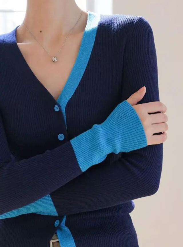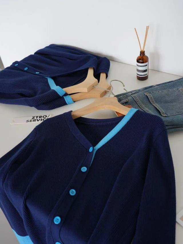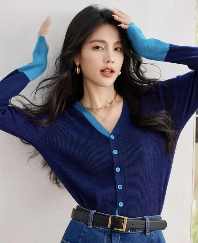 經(jīng)過(guò)精心挑選,找到了這款上身效果超棒的克萊因藍(lán)撞色針織衫。它樣式簡(jiǎn)約百搭,更重要的是顏色極其顯白。