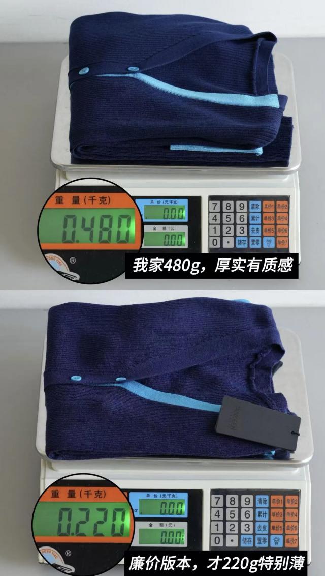 同款實(shí)拍對(duì)比,某寶上的貴價(jià)仿貨質(zhì)量堪憂,領(lǐng)子軟塌塌,衣服又薄又小,上身縮成一團(tuán)。而咱們的針織衫厚實(shí)細(xì)密,有筋骨且細(xì)節(jié)感十足,優(yōu)勢(shì)一目了然。