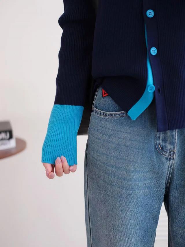 當(dāng)下這個(gè)季節(jié),再適合不過(guò)穿針織衫了。過(guò)于花哨的印花我們難以駕馭,但簡(jiǎn)約純色永遠(yuǎn)不會(huì)出錯(cuò)。這款克萊因藍(lán)撞色羊毛針織衫就非常值得推薦給大家。