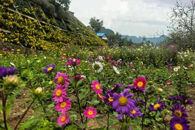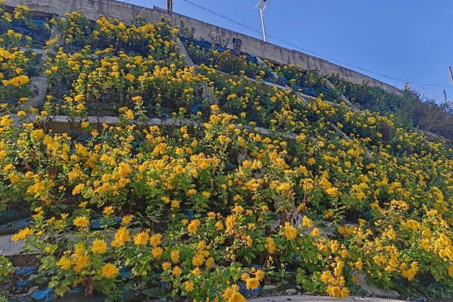 通過村企合作,南山云居和口兒村村集體先后購置17萬株菊花種苗,由村委會(huì)統(tǒng)籌人力進(jìn)行種植、養(yǎng)護(hù),其中七萬株菊花被科學(xué)種植在村內(nèi)2處已完成修復(fù)的地質(zhì)災(zāi)害點(diǎn)位防護(hù)坡上。經(jīng)過半年精心養(yǎng)護(hù),菊花根系扎根護(hù)坡,固土防流失,增強(qiáng)了地質(zhì)災(zāi)害隱患點(diǎn)的防護(hù)能力??趦捍逡跃瘴幕瘓?chǎng)景培育為核心,推進(jìn)區(qū)域環(huán)境綜合治理,更新村內(nèi)道路設(shè)施、增設(shè)停車區(qū)域、新建拍照打卡點(diǎn)位。如今,萬株菊花綻放,將“隱患點(diǎn)”變成了“風(fēng)景點(diǎn)”和“增收點(diǎn)”,實(shí)現(xiàn)了生態(tài)效益與經(jīng)濟(jì)效益雙贏。