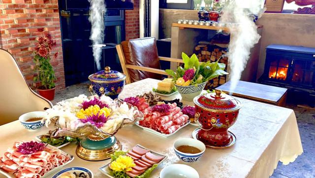 “菊花宴”有火鍋?zhàn)灾涂救庾灾鷥煞N,食客可自由選擇。每桌“菊花宴”都選用云南冷鮮空運(yùn)的食用菊花,或煮入火鍋,或拌入烤肉,既有益健康,又能品嘗菊花本味,為游客帶來深度旅游體驗(yàn)。