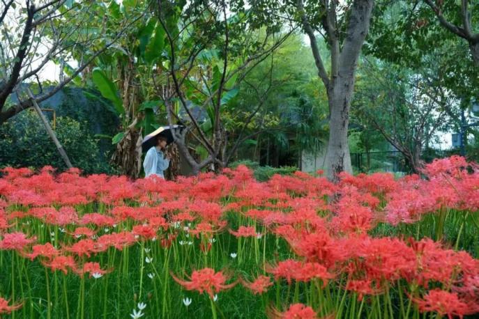 石蒜花,民間俗稱“彼岸花”。修長(zhǎng)的花莖上托著簇簇赤紅的花冠,點(diǎn)綴在林間湖畔,綻放出令人陶醉的驚艷之美。而緊貼地面的蔥蘭,如同散落的星辰,潔白的花瓣散發(fā)著幽香,為秋日增添了一份素凈。