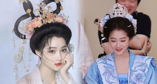 “前世簪花,今生漂亮”,花冠對于簪花而言更為隆重且有儀式感。當代女性戴上花冠,是對服飾文化自信的回歸。對比關曉彤之前在春晚節(jié)目中穿明風漢服的造型和雙鬟望仙髻造型,網友認為宋式花冠造型更適合她。