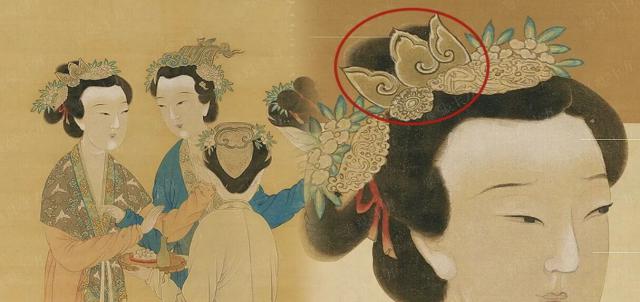 古人在頭上冠飾的想象力十分豐富,唐代也有冠,形狀不一,且是全民審美。比如唐代《宮樂圖》里的花冠很有創(chuàng)意,宋人用花朵累冠重臺有高及二尺的“重樓子”。