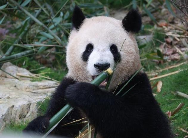大熊貓久久:“久久”是典型的大圓臉,嘴筒短,臉蛋有輕微炸毛,看起來(lái)很霸氣,體型健碩;毛色黑白分明且透亮,性格喜靜,愛爬樹。