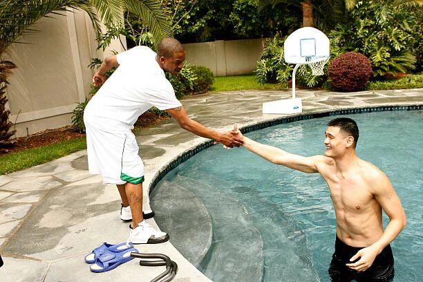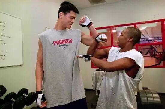 4. 全明星賽上,科比讓姚明放輕松,還主動為他按摩。