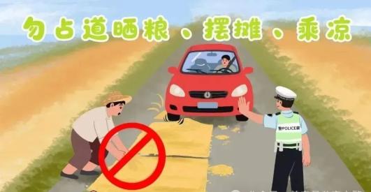 在公路上打場曬糧的行為,不僅影響過往車輛正常通行,還會給道路交通和自身帶來極大的安全隱患。