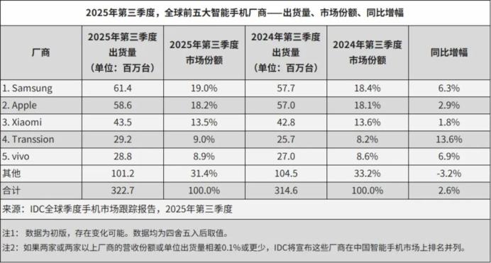 傳音本季度增速達13.6%,創(chuàng)歷年第三季度最高出貨量,是前五中增速最高且唯一達兩位數(shù)的廠商。周樂軒指出,這得益于年初穩(wěn)健的庫存管理、中東和非洲市場需求回暖,以及Infinix Hot 60和Smart 10等系列的更新。