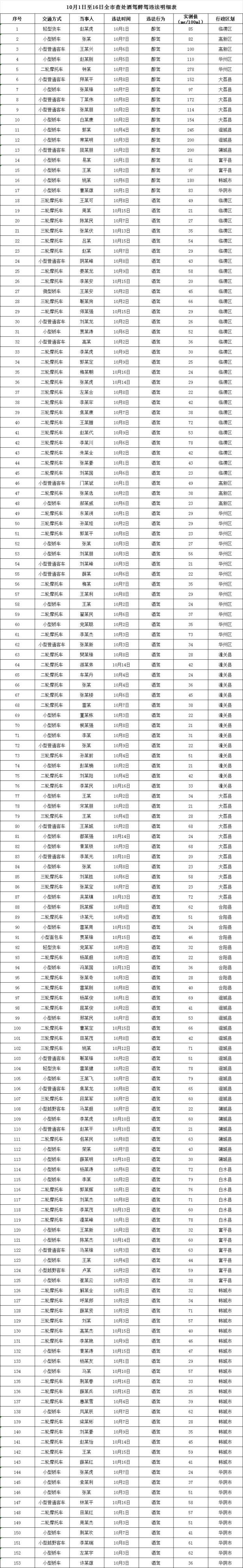 為凈化道路通行環(huán)境,預(yù)防和減少交通事故,渭南公安交警對(duì)各類易肇事肇禍的嚴(yán)重交通違法行為進(jìn)行嚴(yán)查,全面消除道路交通風(fēng)險(xiǎn)隱患,保障群眾出行安全?,F(xiàn)公布10月1日至10月16日全市因酒駕醉駕被查處人員名單,望廣大交通參與者引以為戒。