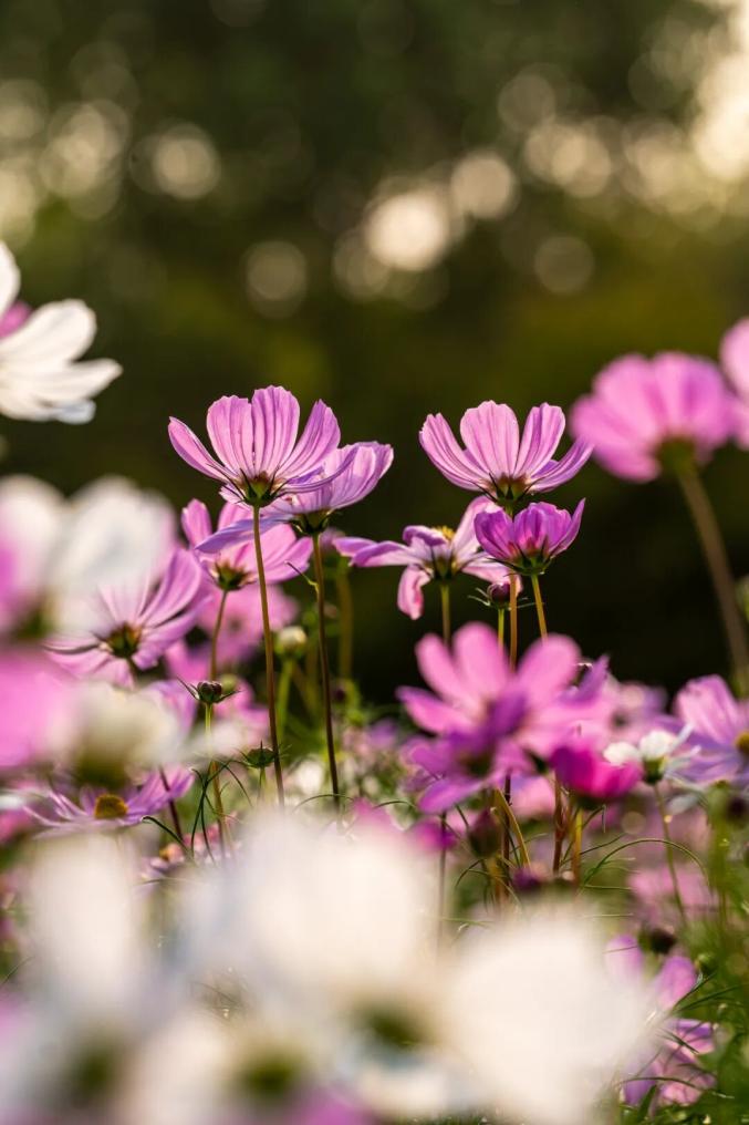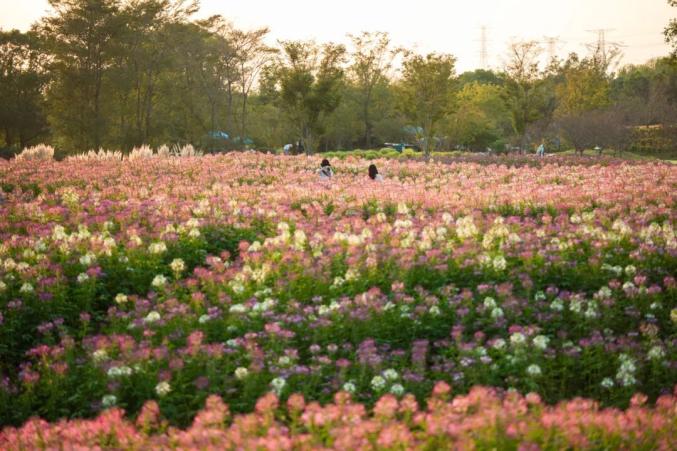不遠(yuǎn)處,格桑花、醉蝶花也在盛放,為這幅秋日畫卷增添了無限層次與遐想。近處是硫華菊潑灑的油彩,熱烈溫暖;遠(yuǎn)方是格桑花編織的輕紗,純潔而堅(jiān)韌;其間點(diǎn)綴著醉蝶之夢,靈動(dòng)而神秘。