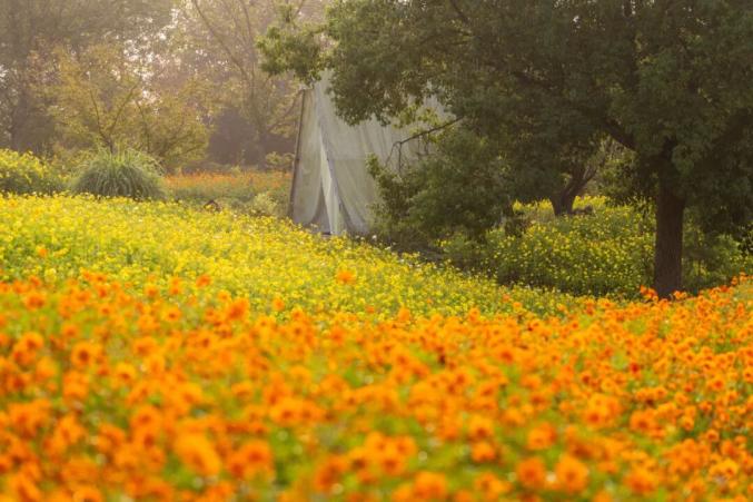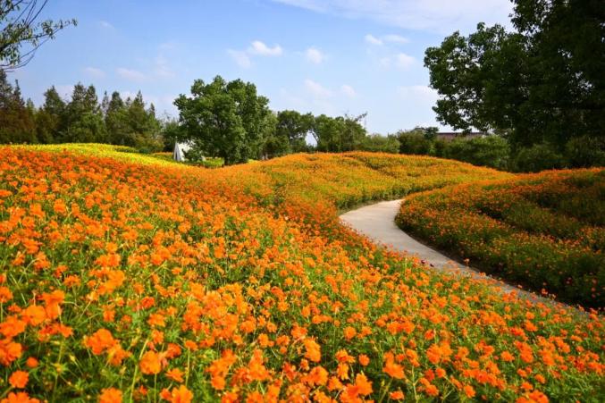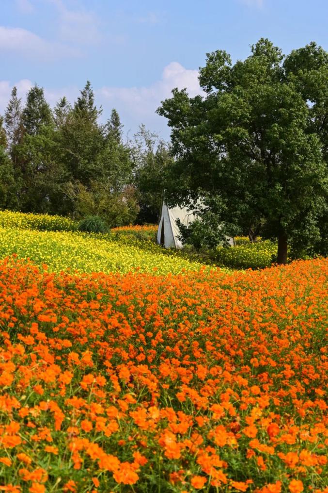 在微風(fēng)中,硫華菊泛起金黃的波浪,與秋日湛藍(lán)高遠(yuǎn)的天空構(gòu)成絕佳的配色。