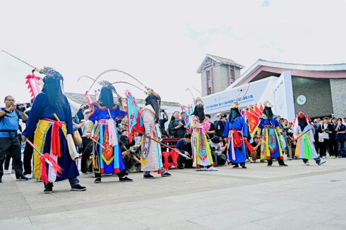 鼓點如沉雷般從古鎮(zhèn)深處滾滾而來。近日,循著這激昂的鼓點,穿過舊州古鎮(zhèn)青石板鋪就的小巷,在一處古宅前的空地上,一場跨越了六百年的戲劇正鏗鏘開演,這就是被譽為“中國戲劇活化石”的安順地戲。