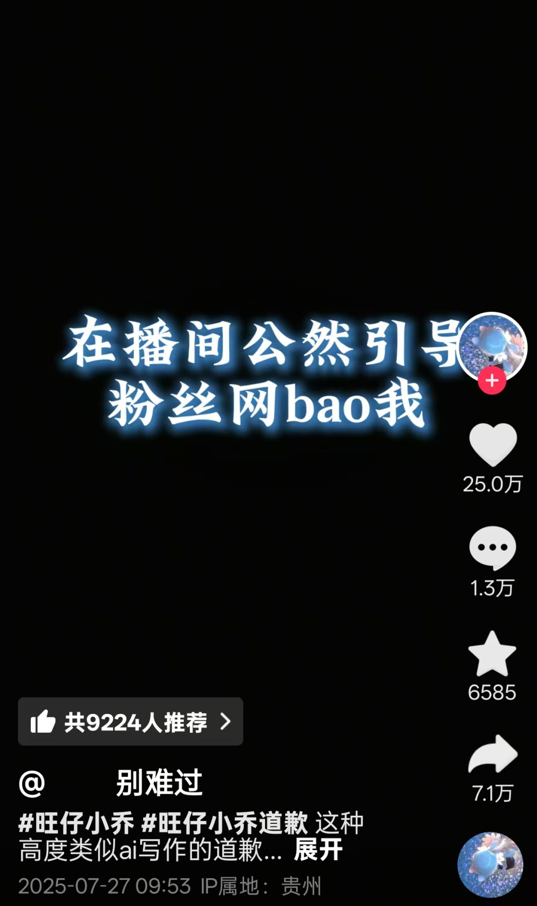 對于這種行為,旺仔小喬不以為然,稱只是想讓粉絲知道造謠者,并無他意。事后還說“微信號不能改嗎?我是透露他的個人信息還是隱私?”甚至氣急怒罵“你給我刷過幾個子?你都沒有給我刷100萬,我鳥你干什么呢?”這引起了眾多網(wǎng)友的不滿和憤怒。