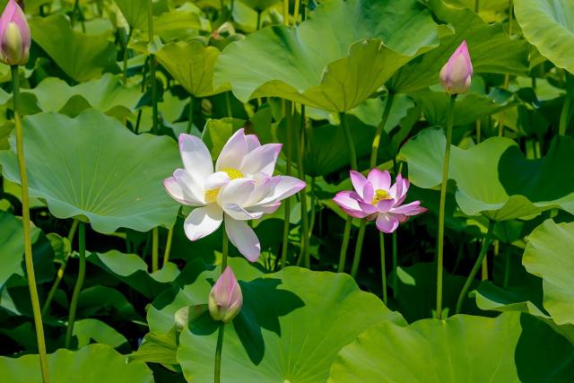 隨著第一縷陽光,古蓮舒展花瓣。從5月早花到10月殘荷,每個階段都藏著驚喜。曾經(jīng)靜候在時光深處的古蓮重見天日,宛如厚積薄發(fā)的青年人才,在溫泉這片土地上實現(xiàn)新的人生價值。