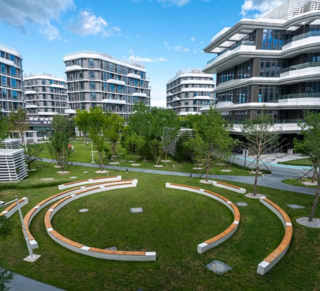走進中關(guān)村溫泉科技園二期,入口的生態(tài)池里,古蓮抽芽展葉、優(yōu)雅綻放?!俺鲇倌喽蝗尽钡钠犯褴S然眼前,也映射在園區(qū)的每一個角落。