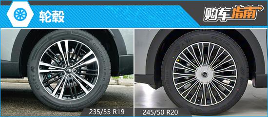 輪轂方面,新車提供2種樣式,有19英寸和20英寸2種尺寸。19英寸輪轂配規(guī)格為235/55 R19的輪胎,20英寸輪轂配規(guī)格為245/50 R20的輪胎。
