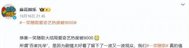 愛奇藝熱度數(shù)據(jù):愛奇藝官方微博《一笑隨歌》熱度破 9000