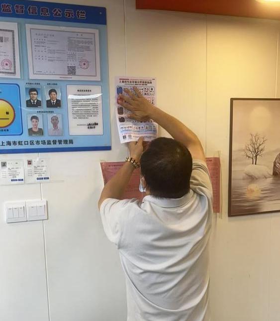 當(dāng)天下午,馬老師、戶外招牌備案負(fù)責(zé)人和運(yùn)維服務(wù)團(tuán)隊一行來到店內(nèi),在醒目位置張貼了嶄新的《上海市生活垃圾分類投放指南》和《上海市市容環(huán)境衛(wèi)生責(zé)任區(qū)責(zé)任告知書》,隨后協(xié)助商戶通過“一網(wǎng)通辦”虹口區(qū)“開店一件事”專欄提交相關(guān)材料。僅用十五分鐘,戶外招牌備案申請就高效完成。