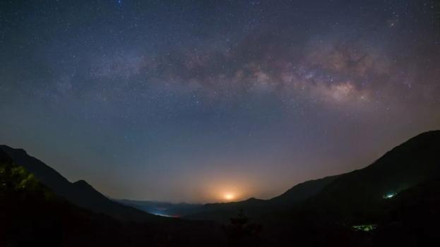 南方的春天常常陰雨連綿,拍到“銀河之眼”幾乎全靠運(yùn)氣。當(dāng)月亮初升時,它恰似一顆溫潤的瞳孔,懸在銀拱與群山剪影之間。