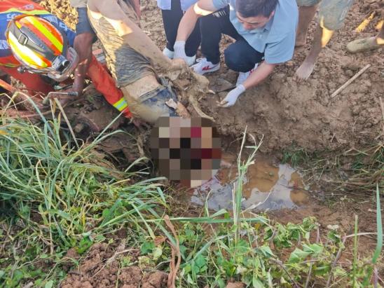 到達(dá)現(xiàn)場后,經(jīng)詢問得知,該男子在駕駛微耕機作業(yè)時,不小心右腿被絞住,微耕機刀片卡在了大腿處,無法取出。