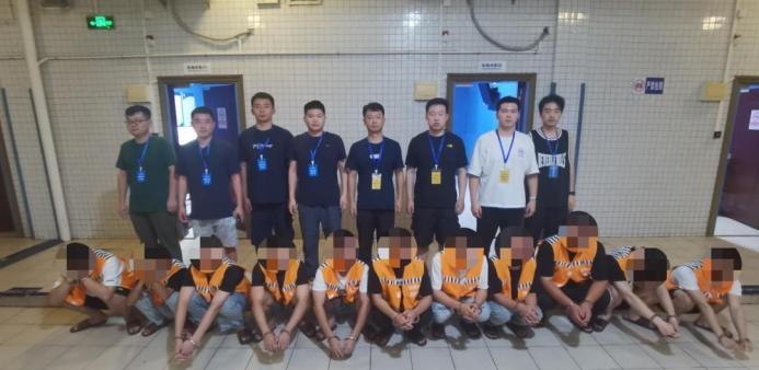接到報(bào)警后,經(jīng)開分局立即組織刑偵、網(wǎng)安等多警種聯(lián)合偵查,并迅速鎖定嫌疑人。9月25日,辦案民警趕赴廣東,在當(dāng)?shù)鼐脚浜舷拢晒Υ虻粼摲缸飯F(tuán)伙,抓獲嫌疑人11名。